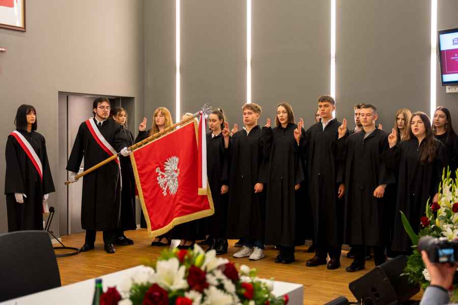 W kolejnej części wydarzenia odbyła się immatrykulacja studentów pierwszego roku, którą poprowadziła Prorektor dr hab. Sylwia Chojnowska, prof. AŁ. W obecności władz uczelni, zaproszonych gości i społeczności akademickiej, nowo przyjęci studenci złożyli uroczyste ślubowanie, oficjalnie wstępując w poczet społeczności akademickiej Akademii Łomżyńskiej.