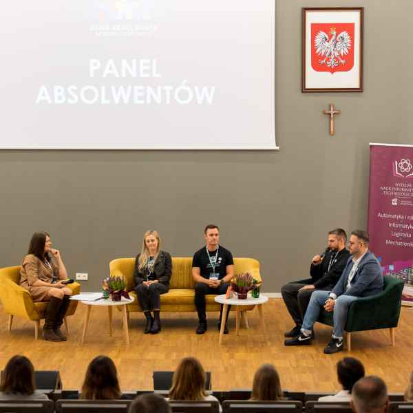 W pierwszym panelu dyskusyjnym absolwenci Weronika Łuba-Arnista, Paweł Arnista, Sebastian Chrzanowski i Jakub Bednarczyk opowiedzieli o swoich ścieżkach zawodowych i doświadczeniach po ukończeniu studiów. Rozmowę prowadziła dr Edyta Dąbrowska, która nadała jej dynamiczny i inspirujący charakter.