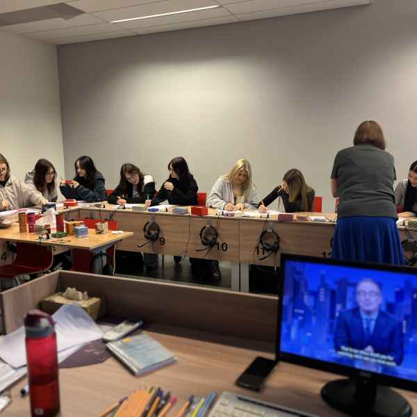 Tematem zajęć z native speakerem Lynn Rabas były programy telewizyjne dla dzieci. Uczniowie rozpoczęli spotkanie od wysłuchania fragmentu audycji, w której omawiano jeden z popularnych programów dla najmłodszych. Nagranie posłużyło jako podstawa do zadania sprawdzającego rozumienie ze słuchu – uczestnicy musieli określić główne założenia programu, zidentyfikować opinie prowadzących oraz wyłowić szczegóły dotyczące fabuły i grupy docelowej. Po części słuchowej uczniowie pracowali w parach, wykonując serię ćwiczeń rozwijających umiejętność mówienia. Dyskutowali o swoich doświadczeniach z programami dziecięcymi, oceniali ich wartość edukacyjną oraz zastanawiali się, jakie elementy sprawiają, że tego typu produkcje są atrakcyjne dla młodego odbiorcy. Zajęcia pozwoliły uczestnikom połączyć rozwijanie kompetencji językowych z refleksją na temat współczesnych mediów kierowanych do dzieci. Uczniowie mieli okazję nie tylko doskonalić rozumienie ze słuchu i umiejętność komunikacji, ale także poszerzyć wiedzę na temat specyfiki programów tworzonych z myślą o najmłodszych widzach.