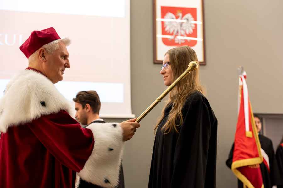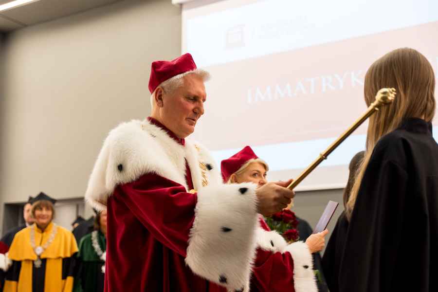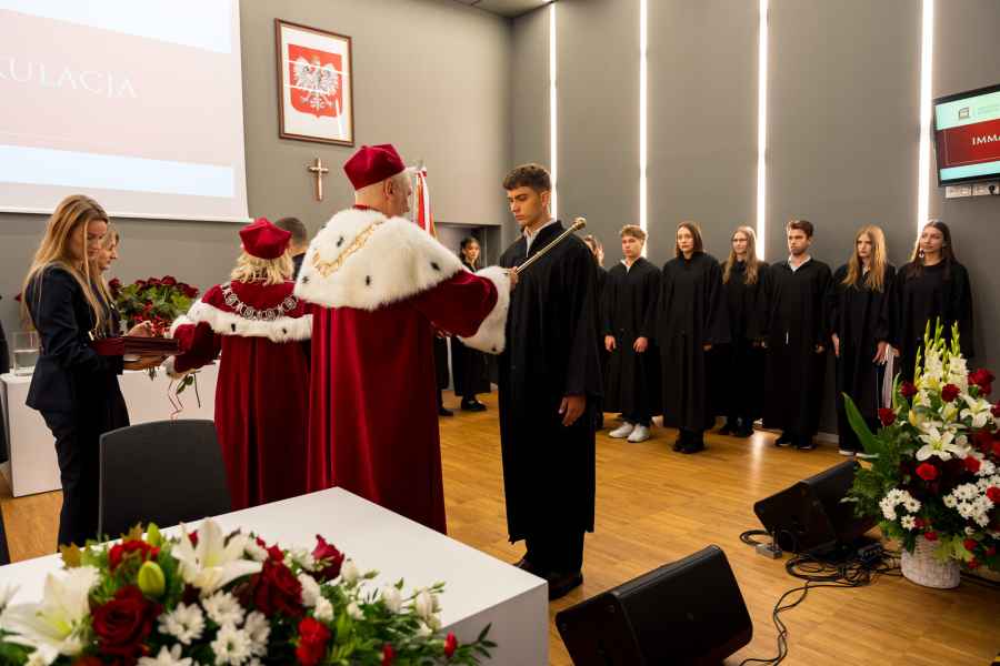W kolejnej części wydarzenia odbyła się immatrykulacja studentów pierwszego roku, którą poprowadziła Prorektor dr hab. Sylwia Chojnowska, prof. AŁ. W obecności władz uczelni, zaproszonych gości i społeczności akademickiej, nowo przyjęci studenci złożyli uroczyste ślubowanie, oficjalnie wstępując w poczet społeczności akademickiej Akademii Łomżyńskiej.