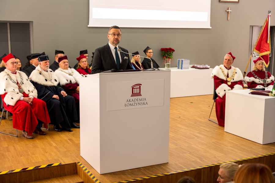 W dniu 9 października Akademia Łomżyńska uroczyście rozpoczęła nowy rok akademicki. Aula im. prof. Antoniego Jakubczaka, została wypełniona społecznością akademicką — studentami, pracownikami naukowymi, zaproszonymi gośćmi. W tym szczególnym dniu udział w ceremonii wzięli minister Nauki i Szkolnictwa Wyższego dr inż. Marcin Kulasek oraz posłanka Alicja Łepkowska‑Gołaś.